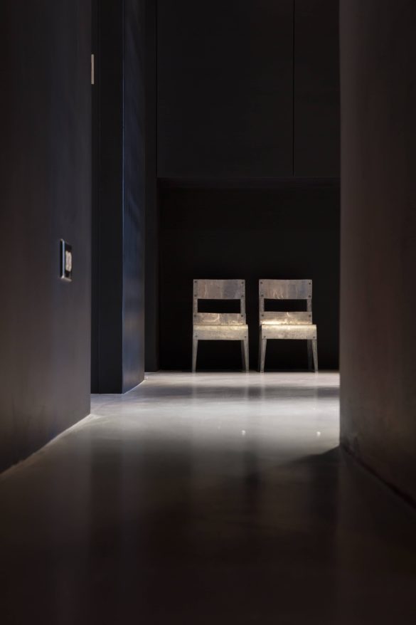 Through characteristics and preferences, the castle within the owner’s mind is outlined. Brick by brick, wood by wood, iron by iron, they construct the diverse facets of the space. At times classical, at times elegant, at times modern, the only constant is the spirit of the castle. Instead of meticulous craftsmanship, there is a dialogue between materials and space, conveying the owner’s traits. Concealed within a modern SRC building, the originally cold steel structure transforms into a warm cement castle — an elegant castle belonging to the Duke’s heart.