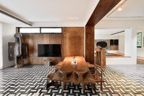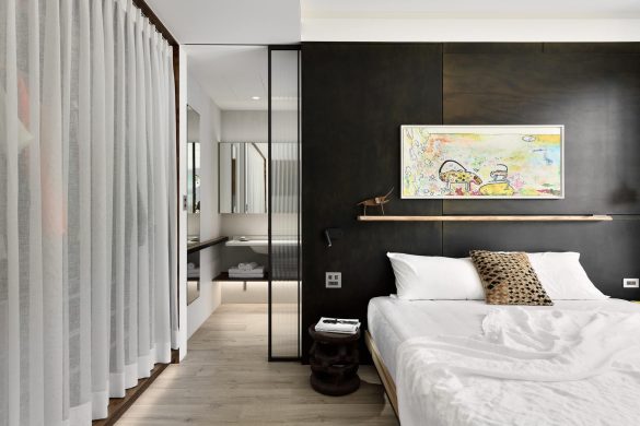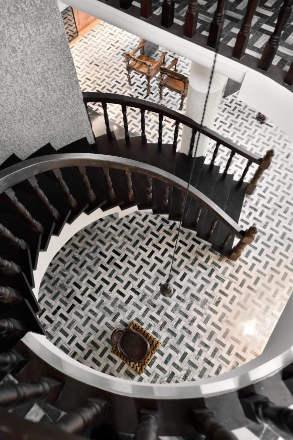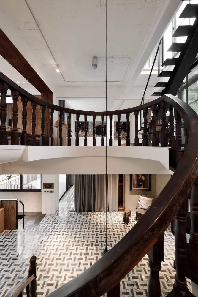 The interior warmth emanates from the accumulation within the space. Through the dialogue between new and old materials, and the continuation of existing textures of memory, sustainable design expresses the crucial concept of family heritage. The imagery of a spiraling staircase gave birth to the design inspiration for a ‘family tree,’ combining the concept of ‘family symbiosis’ with the homeowner’s family of ten. It glimpses the possibilities existing within the space, not only integrating the preferences and personalities of each family member but also ensuring that every individual space is as versatile as branches, fulfilling various functionalities of life.
